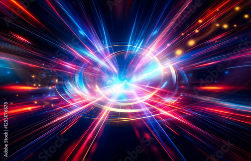 Abstract image of brightly colored lines radiating from a central point, creating a sense of speed and energy.