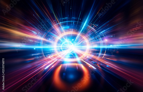 Abstract image of colorful streaks of light moving towards a bright center, creating a sense of speed and energy.