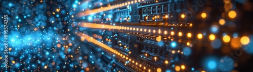 Abstract Image of Data Center with Glowing Lights and Bokeh Effect Representing High-Speed Internet and Technology