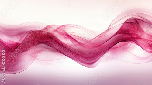 Abstract image of flowing pink and white particles creating a wave like pattern. Soft lighting, ethereal feel. The particles shimmer, giving a sense