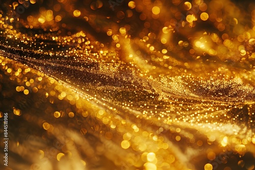 Abstract image of golden glitter waves creating a luxurious and festive background.