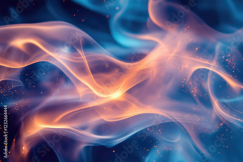 Abstract image of swirling blue and orange smoke with sparkling particles, creating a dreamy and ethereal atmosphere.