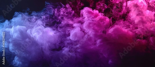 Abstract image of swirling blue, purple, and pink smoke on a black background. Suitable for creative backgrounds, digital art projects, or symbolic visuals representing fluidity and mystery.