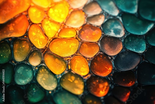 Abstract image of vibrant, multicolored, round shapes resembling a mosaic or honeycomb pattern.