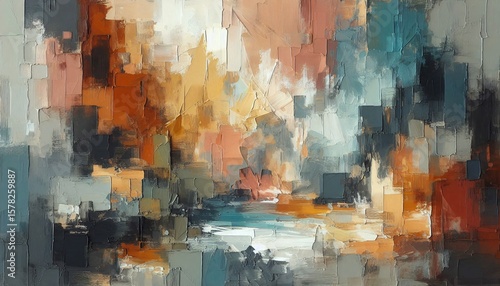 Abstract Impasto Painting with Textured Geometric Blocks