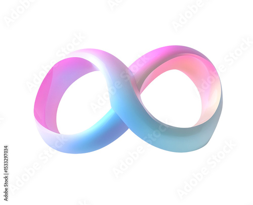 Abstract infinity symbol, pastel pink and blue, transparent background, 3D render, modern design element, loop concept, endless, continuous, flowing, interconnected, vibrant, smooth,