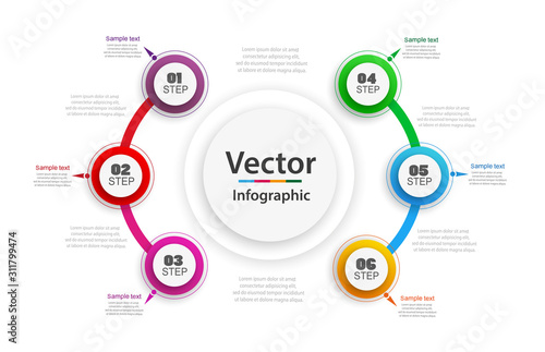 Abstract infographics number options template with colorful circles and 6 steps . Can be used for workflow layout, diagram, business options, banner, web design