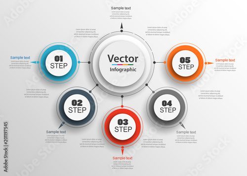 Abstract infographics number options template with five steps. Can be used for workflow layout, diagram, business step options, banner, web design. Vector eps 10