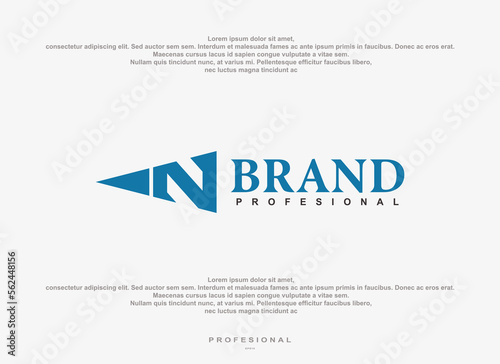 Abstract Initial Letter N Logo. Blue Geometric Letter IN Shape Next Icon Isolated on White Background. Suitable For Technology, Business and Branding Logos. Flat Design Vector Template Elements