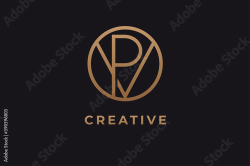 Abstract initial letter P and V logo,usable for branding and business logos, Flat Logo Design Template, vector illustration