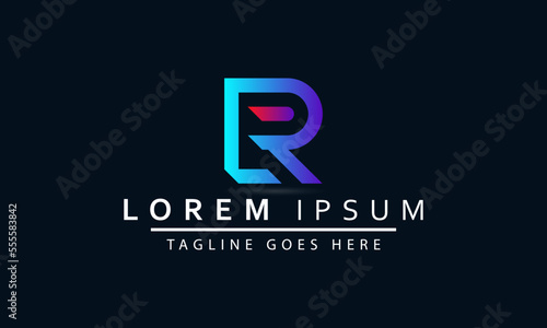 Abstract Initial Letter R Logo. Blue Light Square Geometric Line Style isolated on Blue Background. Usable for Business and Branding Logos. Flat Vector Logo Design Template Element.