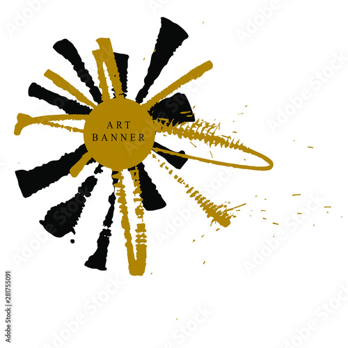 Abstract ink background. Chinese calligraphy art style, Black and luxury gold paint stroke texture. for poster, card, banner, book, cover, brochure and web design. Grunge mud art. vector elements.