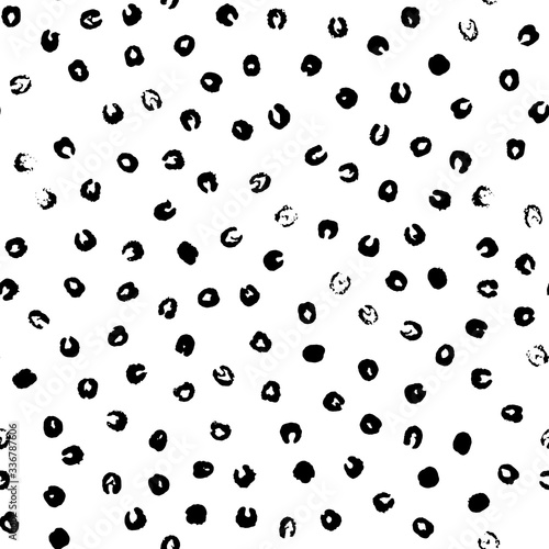 Abstract ink prints seamless pattern. Repeat backdrop of inky blots similar to viruses or bacteria. Black formless round shapes randomly placed on white background. EPS8 stock vector illustration.