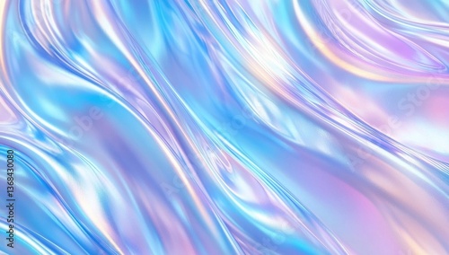 Abstract iridescent liquid flowing design. Soft pastel hues of light blue, pink and lavender create a smooth, fluid surface. The colors subtly shift and blend, producing a mesmerizing effect