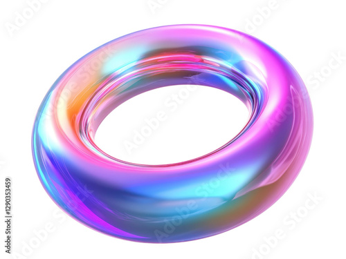 Abstract Iridescent Torus: A 3D Render of a Colorful, Shiny, and Smooth Toroidal Shape Against a Transparent Background