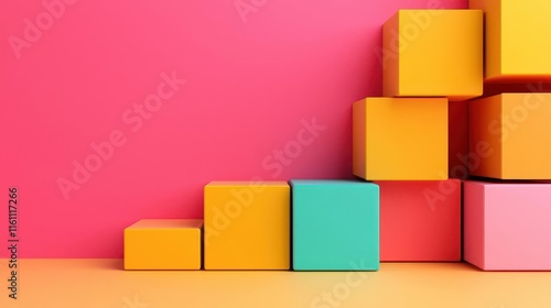 Abstract isometric cubes, vibrant yet minimalist design aesthetic