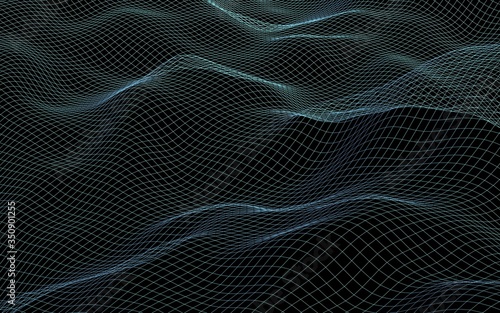 Abstract landscape background. Cyberspace gray grid. hi tech network. 3D illustration