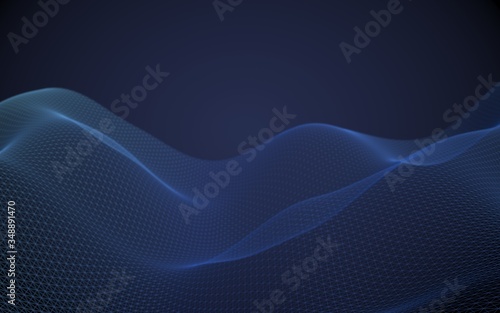 Abstract landscape on a blue background. Cyberspace grid. hi tech network. 3d technology illustration. Depth of field. 3D illustration