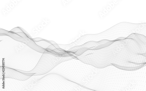 Abstract landscape on a white background. Cyberspace grid. Hi-tech network. 3D illustration