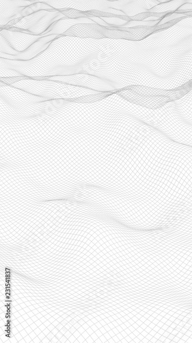 Abstract landscape on a white background. Cyberspace grid. Hi-tech network. 3D illustration