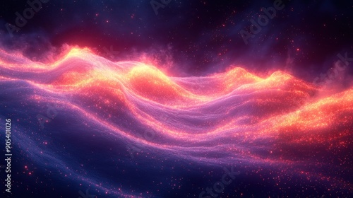 Abstract Landscape with Glowing Waves