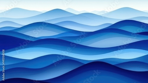 Abstract layered mountain range in shades of blue