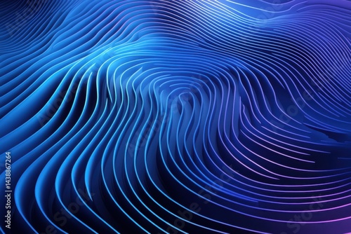 Abstract, layered, vibrant, wavy lines in shades of blue and purple. Detailed, undulating forms create a dynamic, textured visual