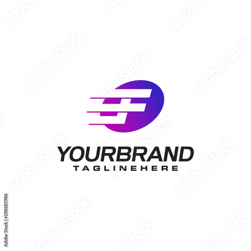 Abstract letter F logo with fast speed lines fast speed moving delivery concept design