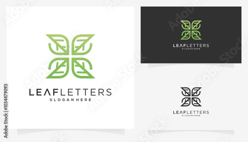 Abstract letter H with leaf vector icons symbols. Creative initials and plants logo design ideas.
