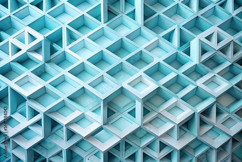 Abstract light blue cubic design with intricate shadows and architectural precision