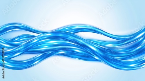 Abstract light blue wavy lines on a light gray background, creating a flowing design. The lines have a glossy, shimmering texture, appearing almost