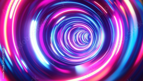 Abstract Light Trails With Motion Blur Effect In A Futuristic Neon Style With High Speed Of Light And Radial Motion Blur.