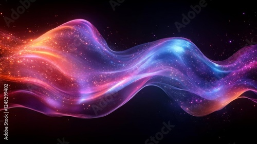 Abstract light waves in vibrant colors with stars and glowing particles. Generative AI