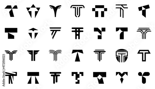Abstract logos collection with letter T. Geometric abstract logos. Icon design