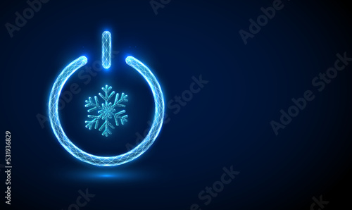 Abstract low poly blue snowflake in power button.