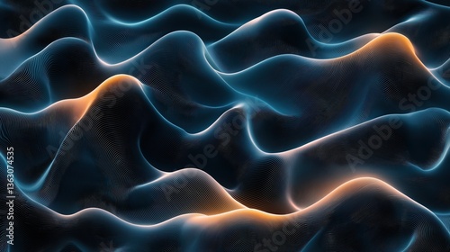 Abstract luminous landscape with wavy patterns in blue and orange tones