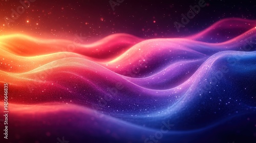 Abstract luminous waves with gradient colors and sparkling particles backdrop