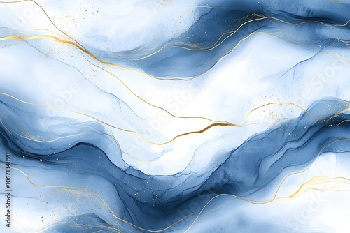 Abstract luxury background with a blue and gold marble texture, white background with golden elements