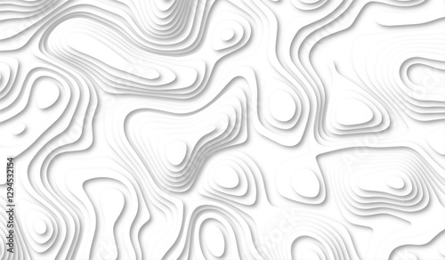 Abstract Luxury paper cut background, Abstract decoration, Topographic geometric map relief texture with curved layers and shadow. Abstract soft white background.