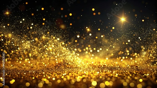 Abstract magical gold dust on black background with beautiful golden art in widescreen format