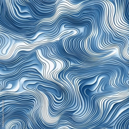 abstract marine pattern, multi-tonal blue waves, white flowing stripes, seamless aquatic texture, modern minimal design, fluid motion illustration, continuous ripple effect