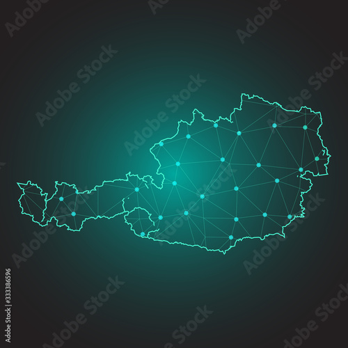 Abstract mash line and point scales on dark background with Map of austria. Wire frame 3D mesh polygonal network line, design sphere, dot and structure. communications map of austria. Vector. - Vector
