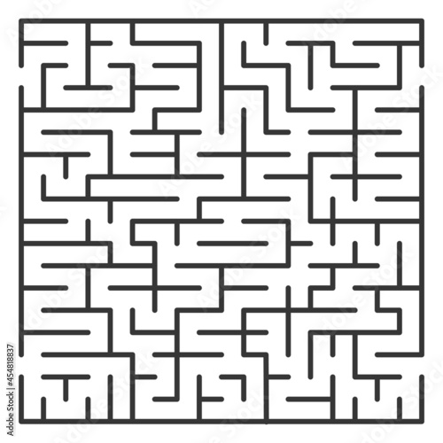 Abstract maze. Find right way. Isolated simple square maze black line on white background. Vector illustration.