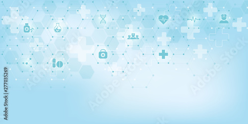 Abstract medical background with flat icons and symbols. Template design with concept and idea for healthcare technology, innovation medicine, health, science and research.