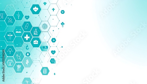 Abstract Medical Healthcare Icons in Hexagonal Grid Pattern.