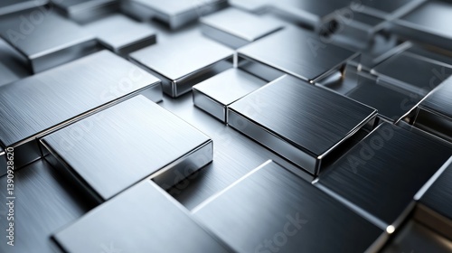 Abstract metallic blocks, grid pattern, polished surface, digital art