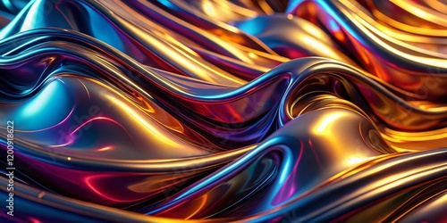 Abstract Metallic Fluid Surface: Reflective, Flowing Curves, Silver Texture