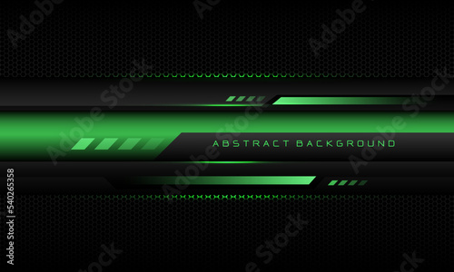 Abstract metallic green line black cyber geometric line banner on black hexagon mesh pattern design ultramodern luxury futuristic technology background vector