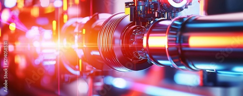 Abstract metallic structure with bright light and bokeh effect in a futuristic style
