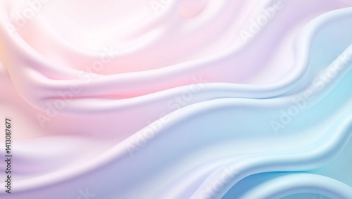 Abstract minimal background with soft flowing silk waves in iridescent pastel tones